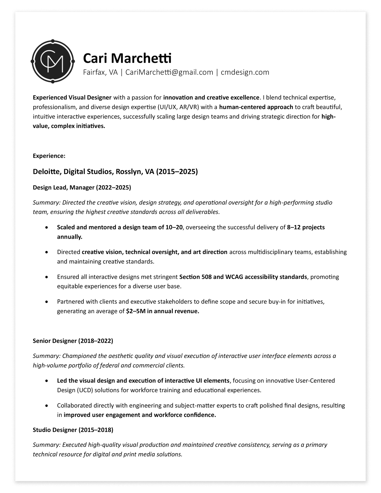 A visual designer and creative lead with 15+ years of experience making interactive experiences that are beautiful and easy to use. I use my expertise across visual strategy, illustration, and immersive experience design, blending these skills with a practical, human-centered approach. I enjoy tackling complex creative challenges and helping design teams grow!